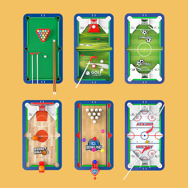 Barnen kan växla mellan biljard, golf, fotboll, basket, bowling och air hockey på några sekunder. Varje spelplan är färgglad, robust och designad för att kännas som en miniversion av “den riktiga grejen”. Ingen tid för att tröttna – här finns alltid något nytt att utmana familjen med!