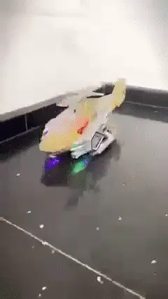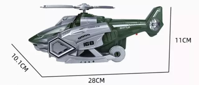 Timmar av underhållande lek med vår transformerande Helikopter. Helikoptern transformeras automatiskt till dinosaurie (eller drake?) med häftiga ljud, Rök (vattenånga) & Ljuseffekter.