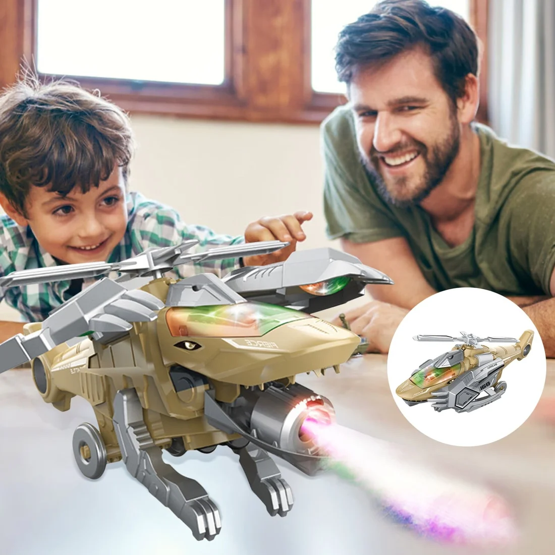 Transformeras mellan Helikopter och Dinosaurie… Eller är det kanske en drake? Med Coola ljud, Ljus & Rökeffekter (vattenånga).