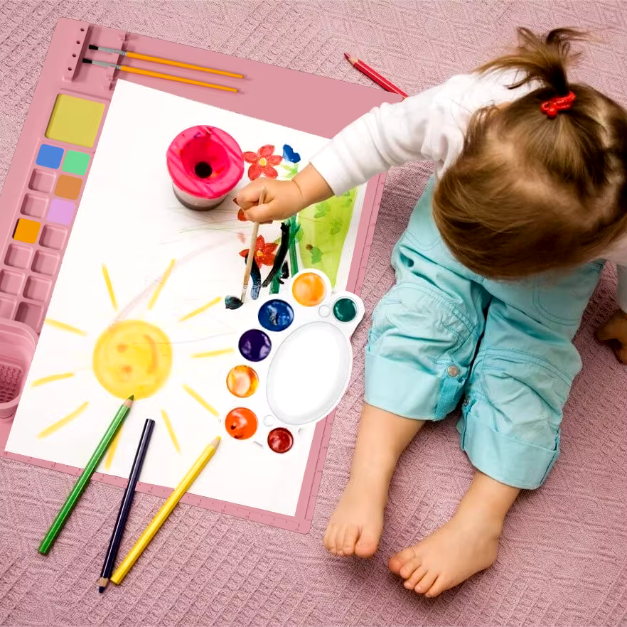 Ge bort glädjen att skapa med en målarmatta som gör alla konstprojekt både roliga och enkla. Vår silikonmålarmatta är speciellt designad för barn som älskar att måla och pyssla, och den är fylld med funktioner som hjälper dem att uttrycka sin kreativitet utan kladd och stök.