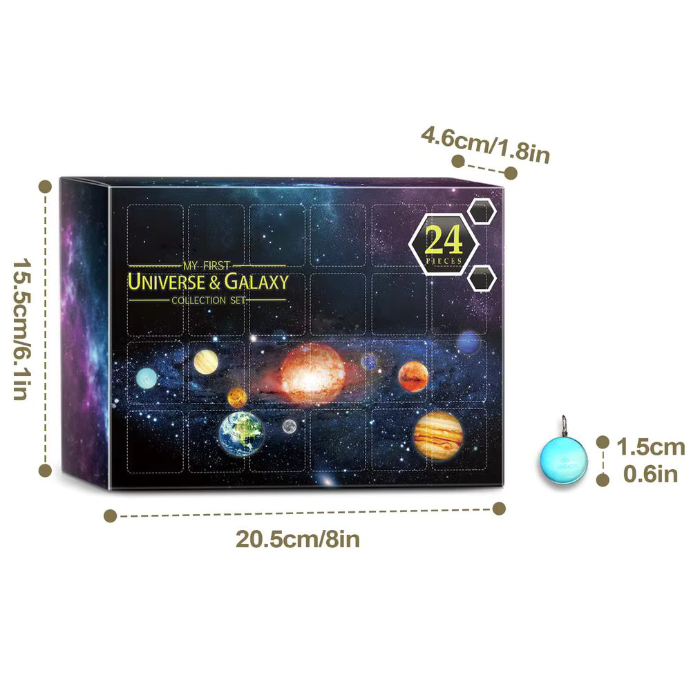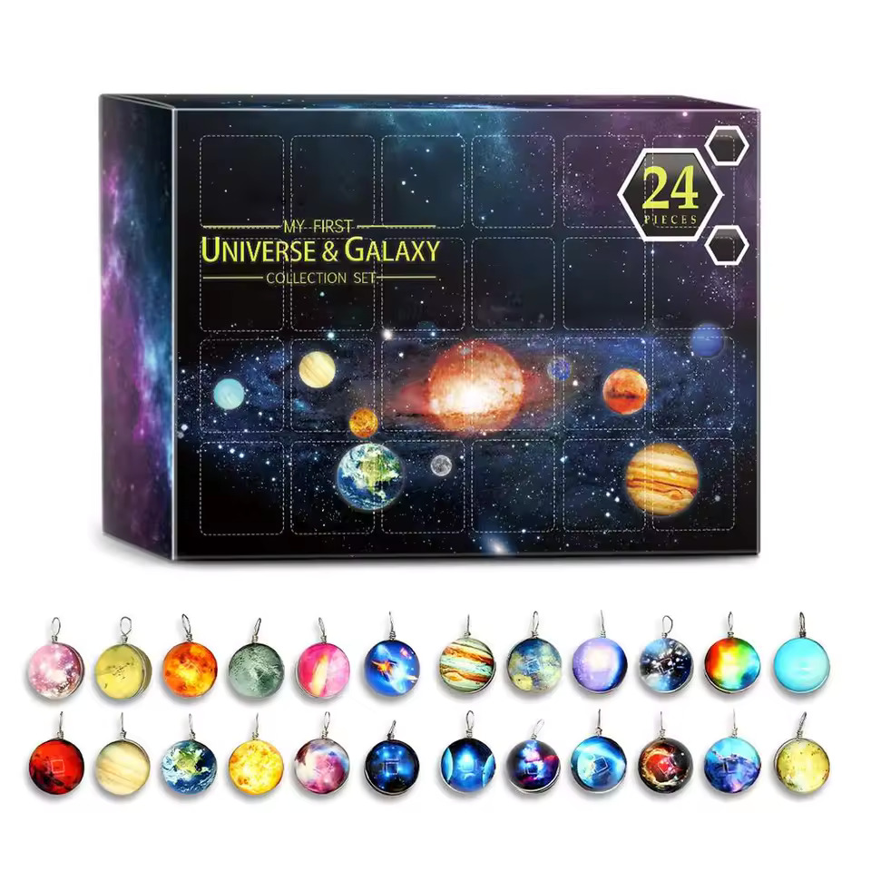 Glöm chokladkalendrar och pappfigurer – här får du 24 små planeter att samla, beundra och förvandla till smycken. Varje lucka är som att öppna ett nytt solsystem, minus rymdresorna och NASA:s budget.