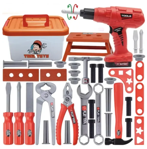 Julen handlar om glädje, lek och fantasi – och Tooly levererar allt i ett paket! Verktygslådan innehåller en imponerande samling av barnsäkra verktyg: hammare, såg, skruvar, muttrar, tång, skiftnyckel, måttband, och mycket mer. Den roliga batteridrivna skruvdragaren (2×AA-batterier) gör leken extra verklig – precis som mammas eller pappas verktyg, fast i barnvänlig version.